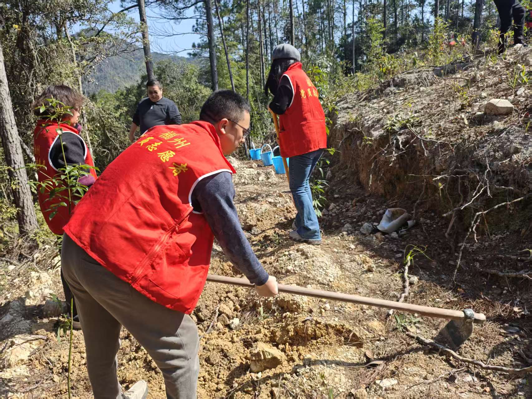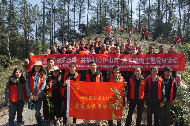 为深入贯彻习近平生态文明思想,践行“绿水青山就是金山银山”理念,庆祝全民义务植树运动45周年、我国第48个植树节,3月12日,福州动物园组织党员干部、职工志愿者,赴福州市晋安区寿山乡叶洋村,参加由福州市农业农村局牵头,联合省农广校、省农体协、省石化供销公司、市邮政分公司、市邮储银行分行、市物资保障公司、琴湖社区党委党建联盟单位共同开展的“党建红引领生态绿,共植初心护山河”义务植树主题党日活动。