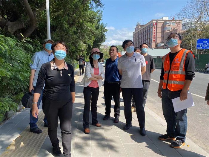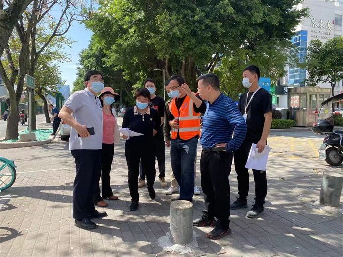 4月14日上午市园林中心主任杨晓、副主任陈凡、中心审批处处长陈学青查看工业路改造工程,在现场,杨晓主任强调: