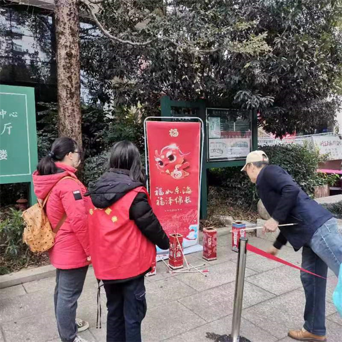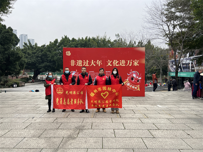 为迎接即将到来的新春佳节。1月29日上午,光明港公园党支部联合福州寿山石鉴定中心等单位在光明港公园开展“非遗过大年 文化进万家”公益活动。活动内容丰富,现场开展了包含:写春联、送福字,投壶、飞镖趣味游园活动,现场更有:盖“福”章、送“福”扇,大师篆刻展演、寿山石雕精品展示、脱胎漆艺精品展示、玉石饰品、文玩手工艺品非遗文化体验交流活动,市民和游客朋友们共迎新春佳节,共享闽都非遗文化魅力,活动现场一片祥和喜庆的节日氛围。此次活动旨在弘扬中国传统文化,推动非遗文化的传承与发展,通过丰富多彩的活动,让人们重拾对传统文化的热爱和参与感,让非遗文化融入生活中,在新春佳节来临之际传递祝福和美好的祝愿。