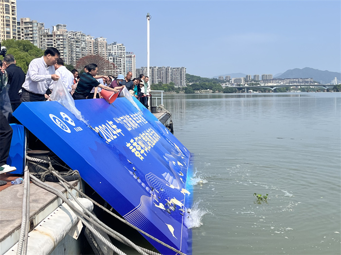 活动现场,各位来宾、工作人员、志愿者向闽江投放鲢、鳙、香鱼和团头鲂共计20万尾,拉开了福州市2024年渔业增殖放流工作的序幕。增殖放流是目前恢复自然水域生物资源最为有效的手段之一。实施人工增殖放流对维护生物多样性、维护生态平衡都具有重要意义,通过此次增殖放流活动,不断提高和增强人民群众生态保护意识,科学养护水生生物资源,共同保护、丰富水域生物多样性,共同守护闽江,促进水域生态环境的修复和水生生物资源的可持续发展等方面做出努力。