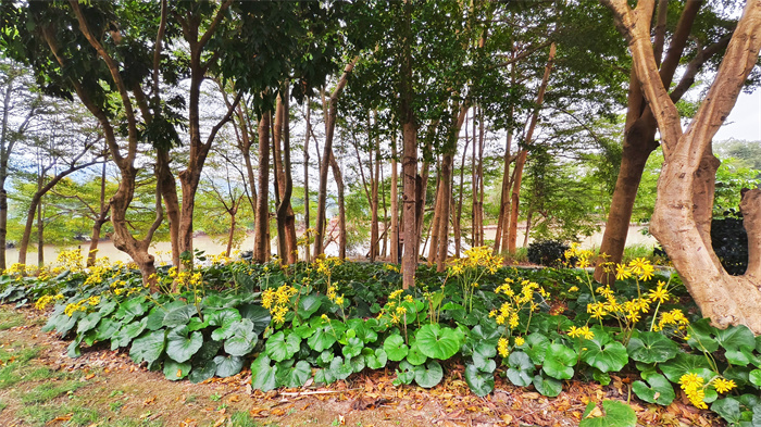 花海公园疏林水塘的大吴风草花不仅为公园增添了美丽的景观,还为人们带来了健康和美的享受。
