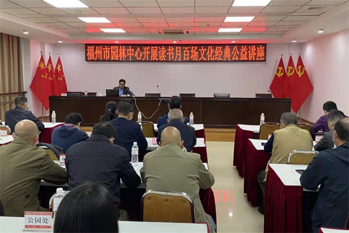 为深入学习贯彻习近平新时代中国特色社会主义思想,提升干部职工的人文素养,根据《中共福州市委文明办关于开展“第十六届福州读书月百场文化经典公益讲座”活动的通知》精神,福州市园林中心选定主题并邀请授课教授,于11月15日在东部办公区8号楼1029会议室举办了一期以《习近平新时代中国特色社会主义思想》为主题的读书月公益讲座。中心领导、中心机关其他党员和基层单位领导50多人参加。