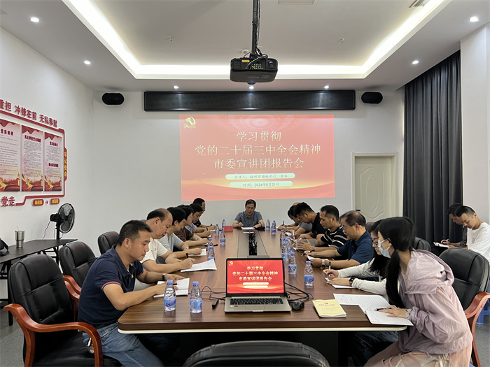 8月21日下午,市园林中心党委委员、副主任翁芬同志,在光明港公园管理处向光明港公园党支部、园林质量监督站党支部全体党员干部开展“学习贯彻党的二十届三中全会精神市委宣讲团报告会”专题宣讲。会上,翁芬副主任围绕深刻认识和理解把握党的二十届三中全会的重大意义、深入学习领会习近平总书记在党的二十届三中全会上的重要讲话精神、全面准确理解《决定》提出的进一步全面深化改革重大举措全力以赴抓好全会精神贯彻落实等方面,对党的二十届三中全会精神进行系统宣讲和深入阐释。参加报告会的党员干部表示,报告主题鲜明、内容丰富,对我们深刻领会、准确把握全会精神具有重要的启发和指导意义,将以宣讲活动为契机,全面贯彻落实全会精神,主动担当作为,为加快建设现代化国际城市先行示范区贡献力量。