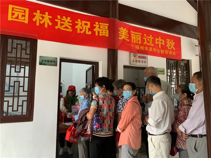 9月29日上午,茶亭公园管理处开展“园林送祝福 美丽过中秋”志愿服务活动暨福州园林绿色银行中秋(国庆)志愿服务活动。活动现场市民扫码后领取小绿植,主要品种有绿萝、吊兰、白掌等,志愿者向市民提供家庭养花知识技巧,同时介绍绿色银行小程序,发放相关宣传单,进行爱绿护绿、垃圾分类等宣传活动,与市民共同庆祝中秋国庆节日到来。