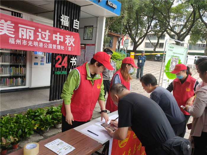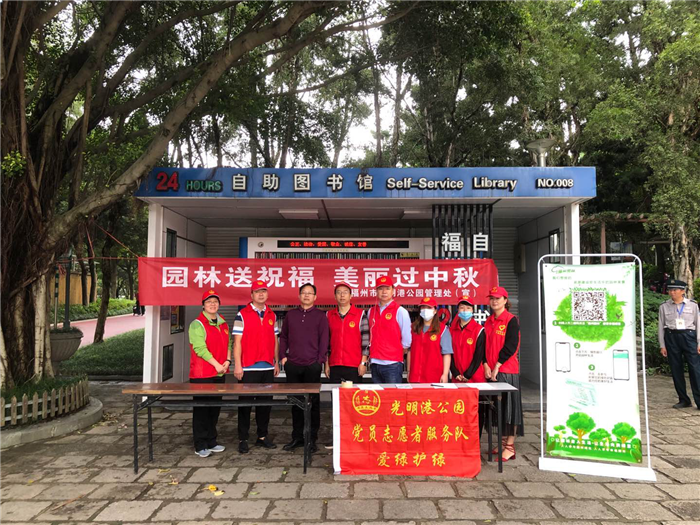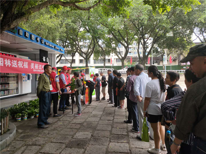 9月29日,光明港公园开展了“园林送祝福 美丽过中秋”志愿服务活动,活动现场向来园游客送出100盆绿植,主要品种有绿萝、吊兰、白掌、合果芋等,游客朋友们按顺序排队领取,先到先得,通过活动扫码还可以获得绿色银行10个绿色积分币。活动现场吸引来许多游客前来参加,除此之外,还向游客朋友提供家庭养花知识咨询,包括家庭花卉种养及病虫害防治知识,服务市民园林生活,获得更多的园林技巧。