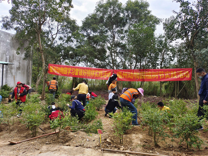 2023年3月12日上午,为庆祝我国第45个植树节,深入学习贯彻习近平生态文明思想,弘扬爱绿、植绿、护绿的文明新风,增强未成年孩子们的环保意识,造绿的热情,培养爱护环境的良好习惯、提供亲近大自然、参与园林建设工作的机会,福州动物园于2023年3月12日上午了开展“共建绿色家园,共享生态福祉”亲子植树节活动,本次活动通过福州园林绿色银行招募了10组亲子家庭参与,在动物园志愿者们的指导与协助下,大家群力群策认领地块,为种植地块命名,两两一组,挖坑、扶树、填土、踩实、浇水,有条不紊,分别为“长劲鹿”“黄麂”“黑叶猴”“金丝猴”“环尾狐猴”地块的上种植木犀科女贞属植物“小蜡”,每组家庭平均种植15棵小蜡,共种植约150棵,植绿面积约为100㎡,为福州动物园新添了一份色彩。参与活动的家庭,享受亲子互动的快乐,收获种植成果的喜悦,还有动物园赠送的园艺小工具和多肉盆栽。