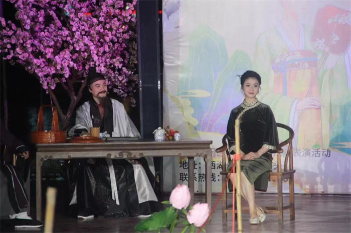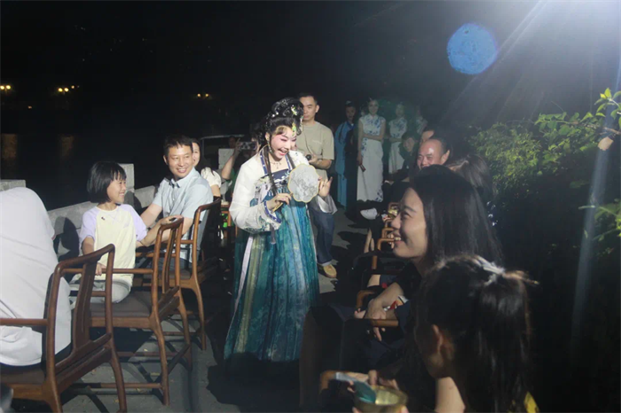 《“福”见儒林》以闽剧创始人“曹学佺”和当代年轻演员对话带入式的表演,将古诗、舞蹈、古筝以及流行音乐和经典折子戏《荔枝换绛桃》《双蝶扇》进行了多元融合巧妙呈现,并以剧中剧的形式融入了新创排的沉浸式闽剧情景剧《白蛇传》。